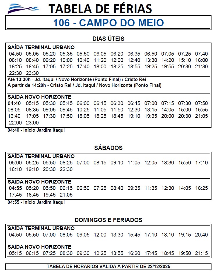 A PARTIR DE 14:20 - CRISTO REI / JD. ITAQUI / NOVO HORIZONTE (PONTO FINAL)