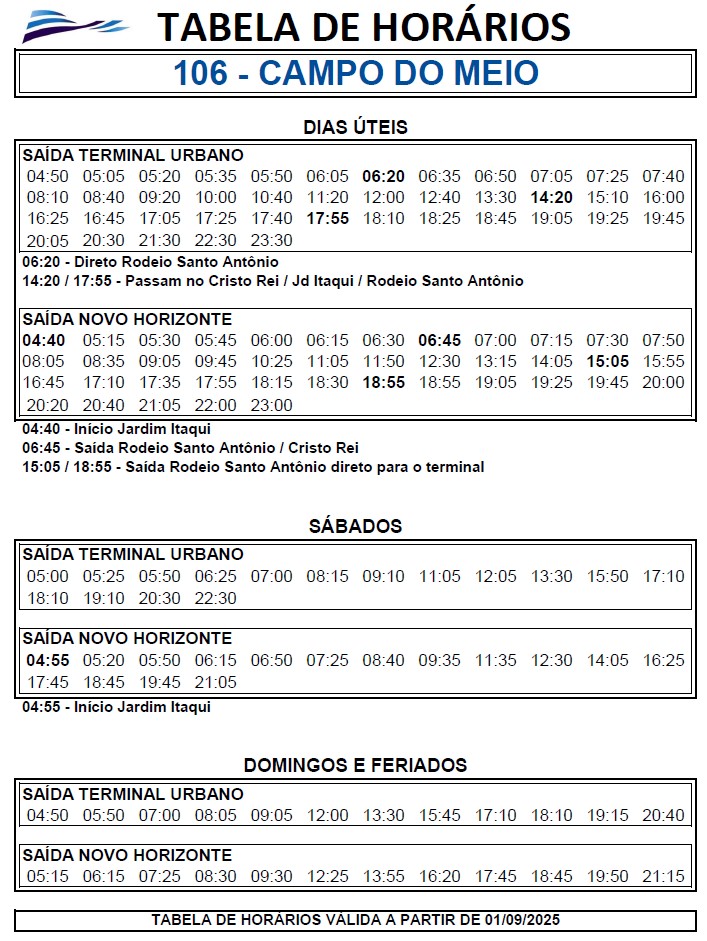 TODOS OS HORÁRIOS, COM EXCEÇÃO DO HORÁRIO DE 06:20, ATENDEM JD. ITAQUI, CRISTO REI E NOVO HORIZONTE