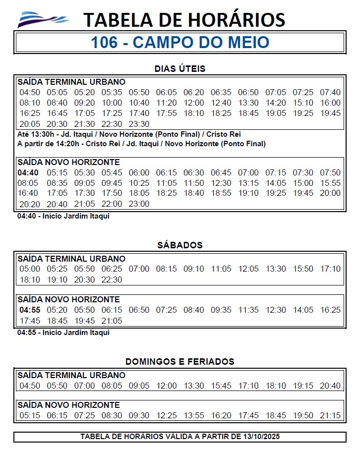 ATÉ 13:30 - JD. ITAQUI / NOVO HORIZONTE (PONTO FINAL) / CRISTO REI